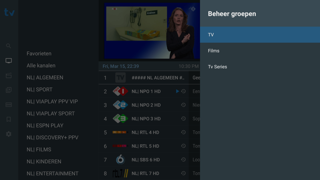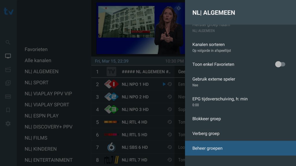 13. Stand on any group, in our example NL | GENERAL. Click on the select/ok button on your remote control and hold it down.