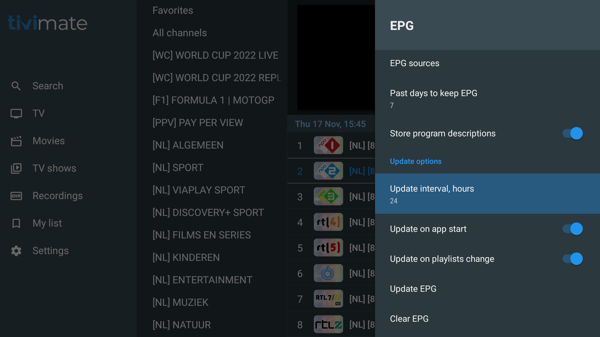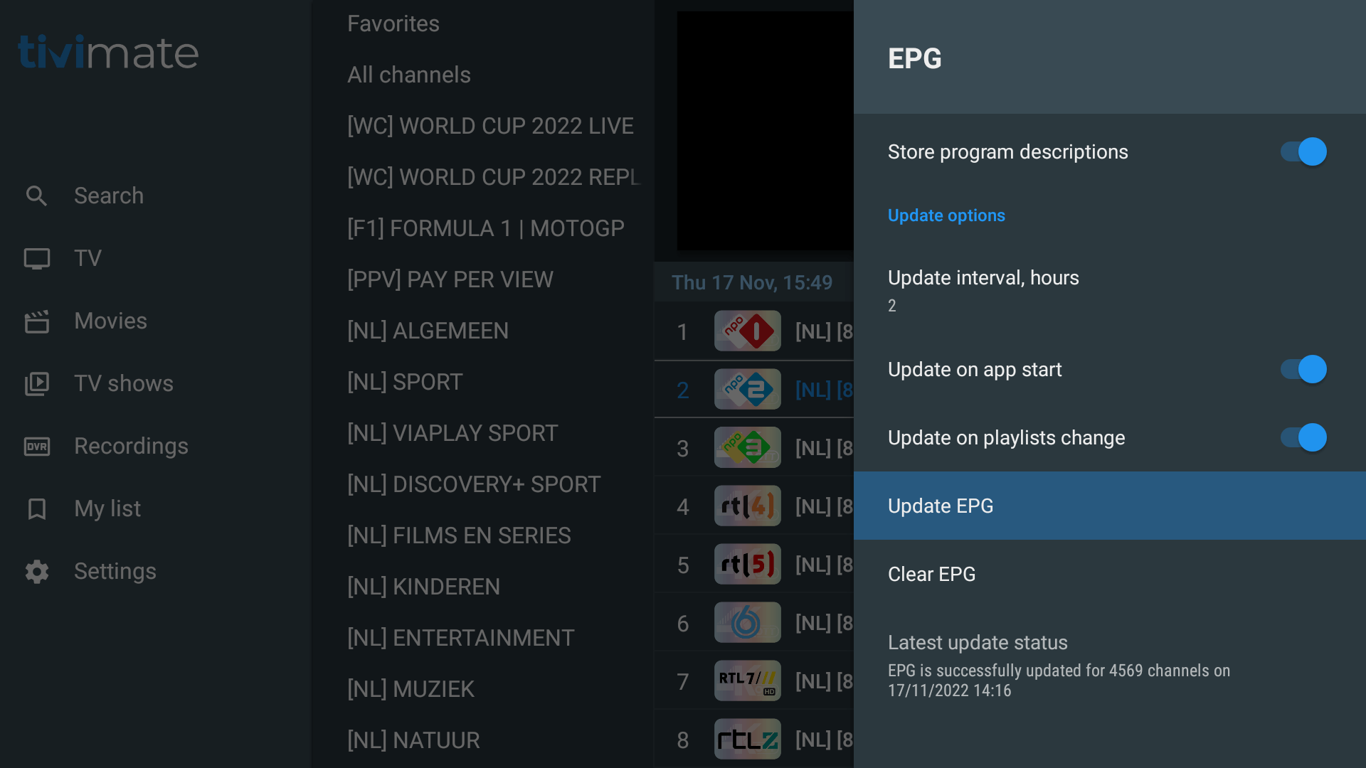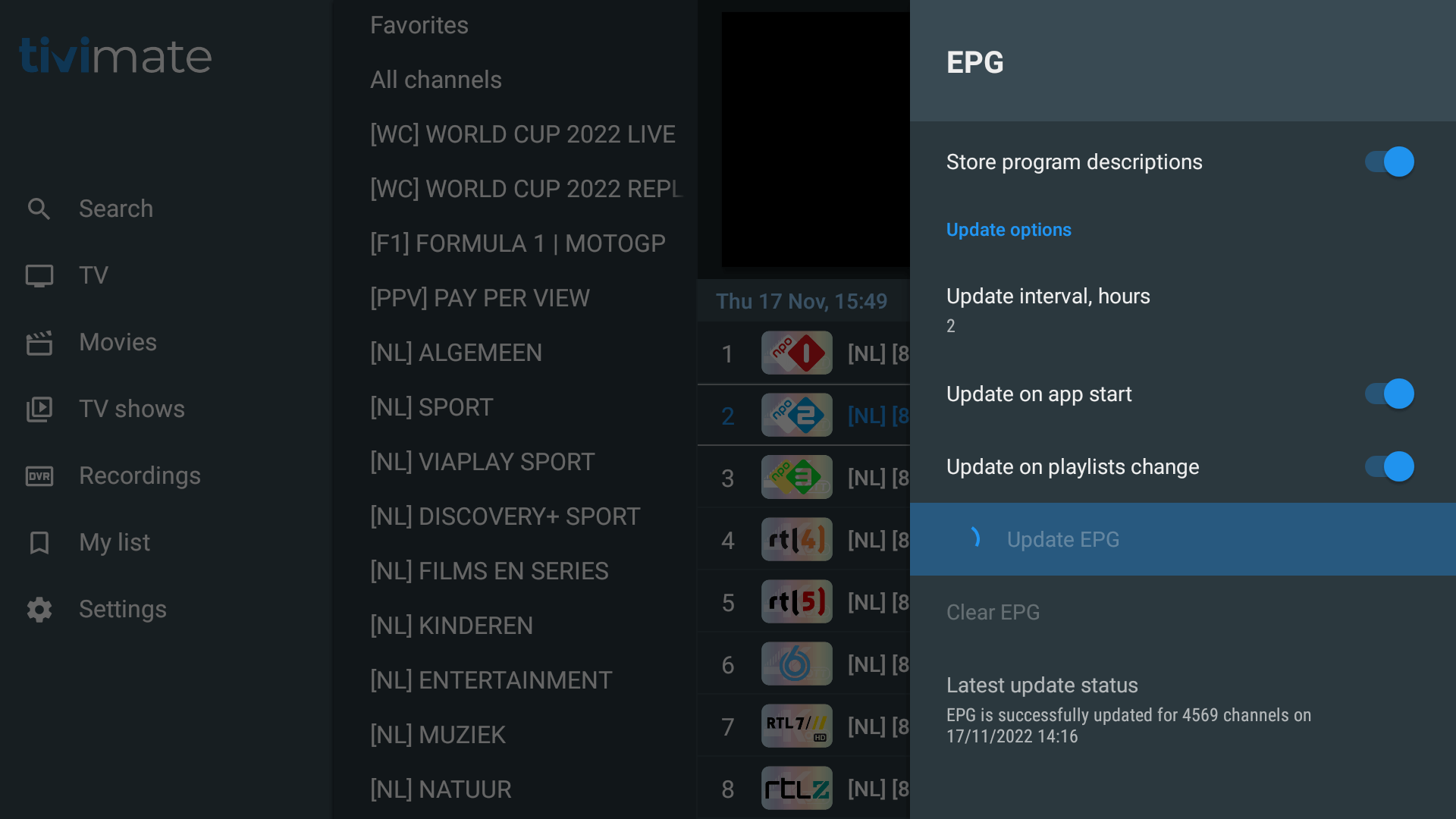 29. Klik ‘Update EPG’